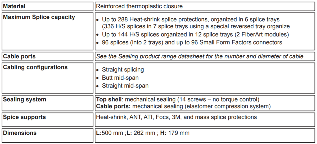 components for future upgrades or re-access to the closure. (No tape, glue, heat-shrink tubes, or cable jacket preparation is needed).