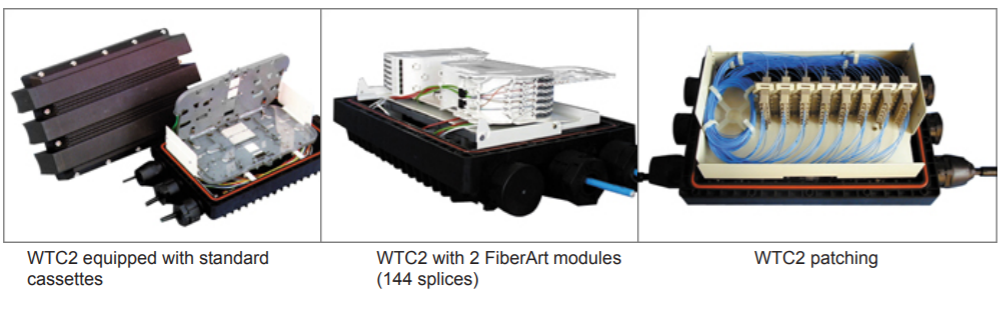 - Capacity: 6 splice trays or 2 FiberArt modules
