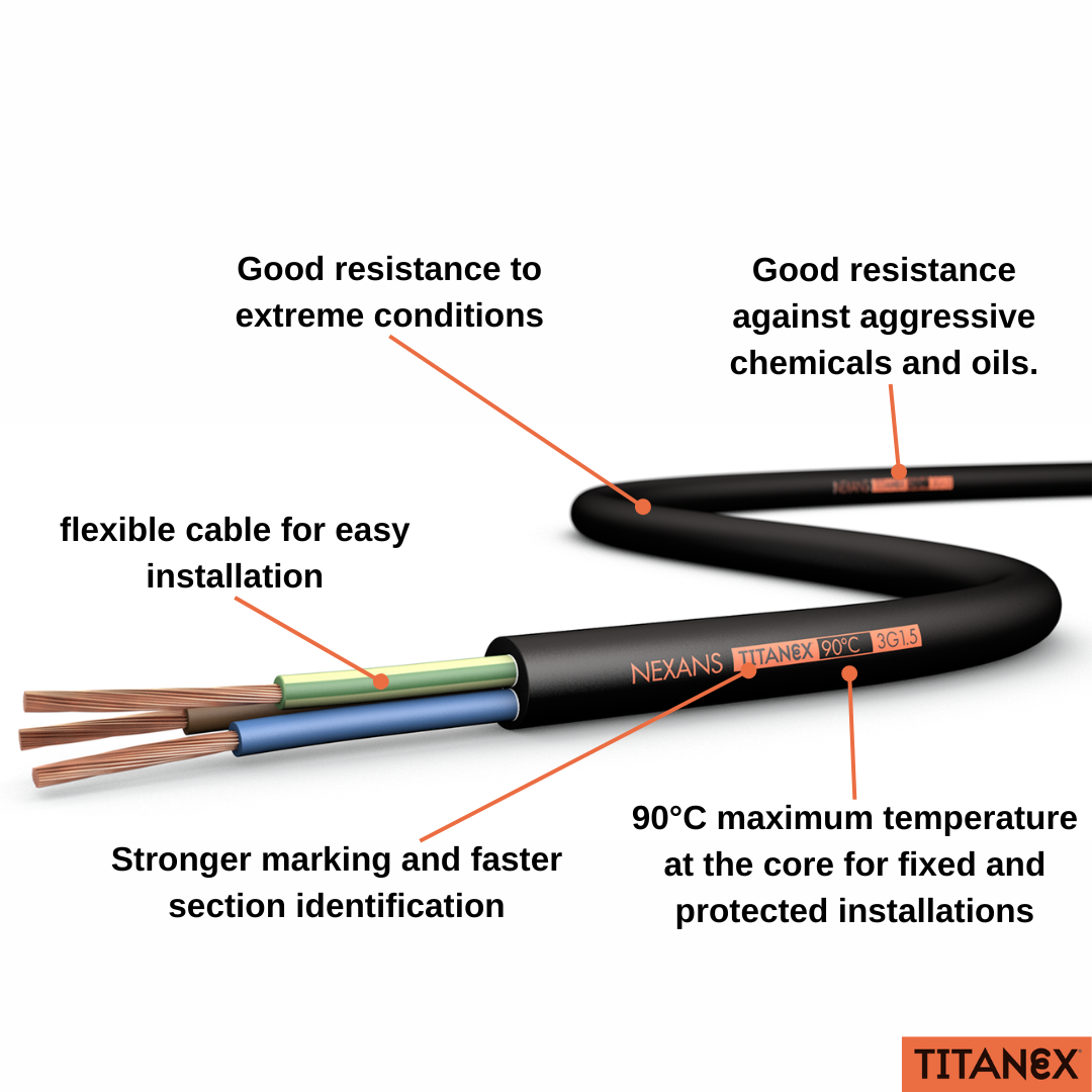 The TITANEX® flexible rubber cable range offers exceptional performances and is designed to release you from all your constraints. Robust yet flexible, TITANEX® is easy to use and withstands the toughest of conditions, such as hard-wearing situations, extreme temperatures and most chemicals