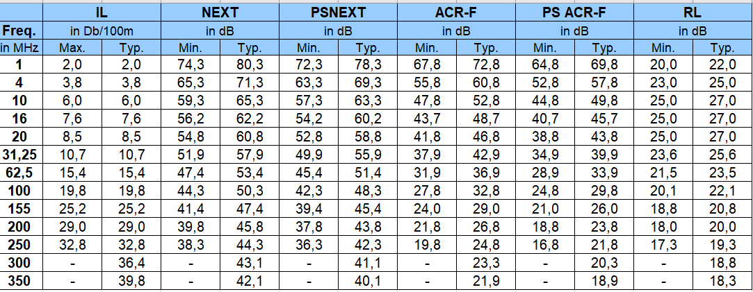 LANmark-6 kablene er testet opp til 350MHz og med garatert ytelse til 250MHz. Kablene har gode elektriske egenskaper med større margin (headroom) og båndbredde enn kravene i alle internasjonale, europeiske og amerikanske standarder, inkludert ISO/IEC 11801:2002, IEC 61156-5, EN 50173, EN 50288, TIA/EIA 568-B.2-1.