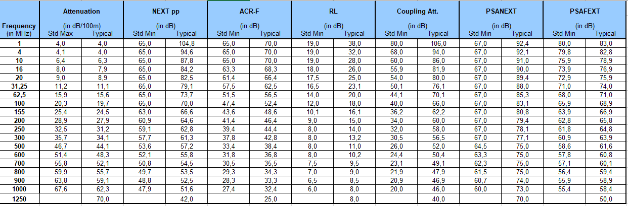 - Iht Kat 7A standarden klasse FA 1000 MHz