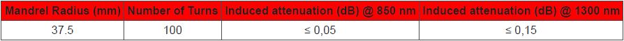 - Tight fibre bend radius: 7.5 mm