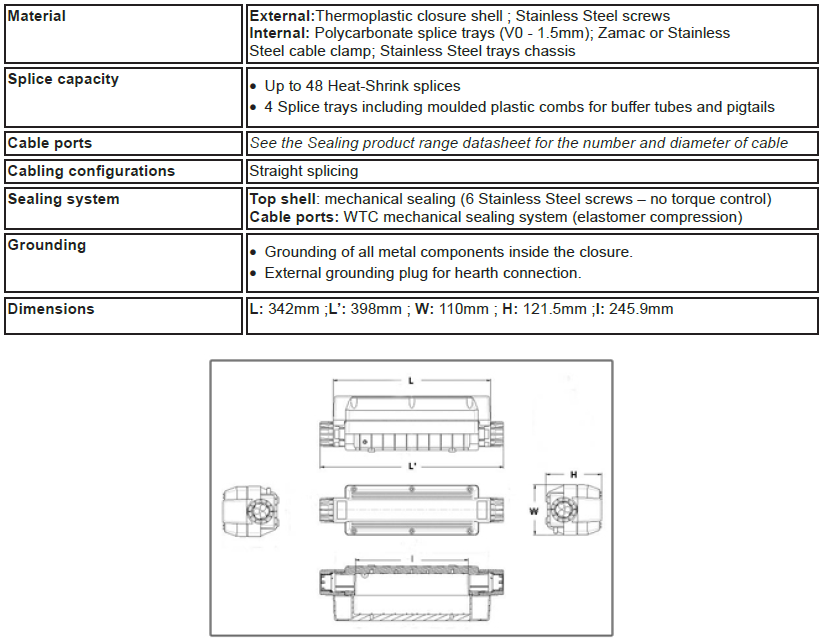 - Cable sealing devices based on a mechanical compression system : this allows to re-use all components for future upgrades or re-access to the closure.